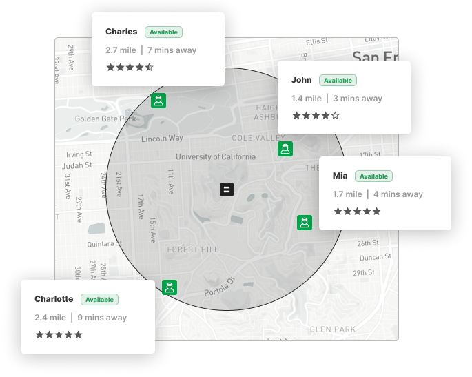 Find workers closest to order destinations, sorted by distance or live traffic based ETA